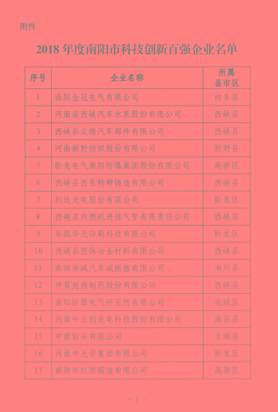 為深入實(shí)施創(chuàng)新驅(qū)動發(fā)展和“兩輪兩翼”發(fā)展戰(zhàn)略,增強(qiáng)全市企業(yè)自主創(chuàng)新能力和核心競爭力,引領(lǐng)促進(jìn)企業(yè)成為技術(shù)創(chuàng)新主體,按照《南陽市科技創(chuàng)新百強(qiáng)企業(yè)考核評定辦法》要求,亞澳農(nóng)機(jī)等6家企業(yè)榮獲此榮譽(yù)。
