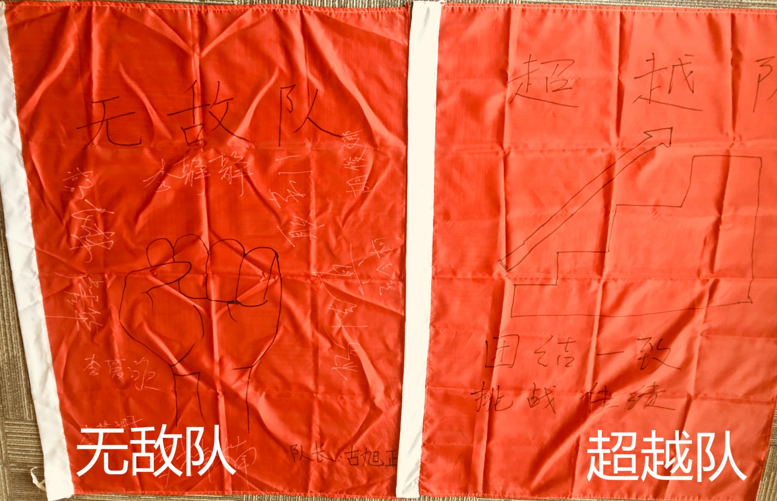 士氣展示,每組在隊(duì)長的帶領(lǐng)下,繪制隊(duì)旗隊(duì)呼,并列隊(duì)進(jìn)行展示,在展示的過程中,在每一個(gè)隊(duì)員的配合下,整齊劃一,士氣滿滿。
