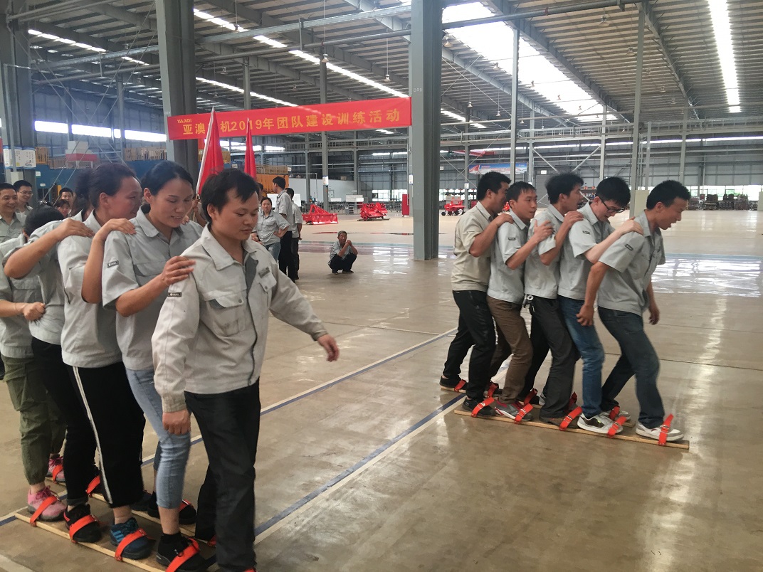 為了提高團(tuán)隊(duì)協(xié)作能力,2019年6月6日亞澳農(nóng)機(jī)全體員工在車間進(jìn)行了團(tuán)隊(duì)建設(shè)訓(xùn)練活動(dòng)。