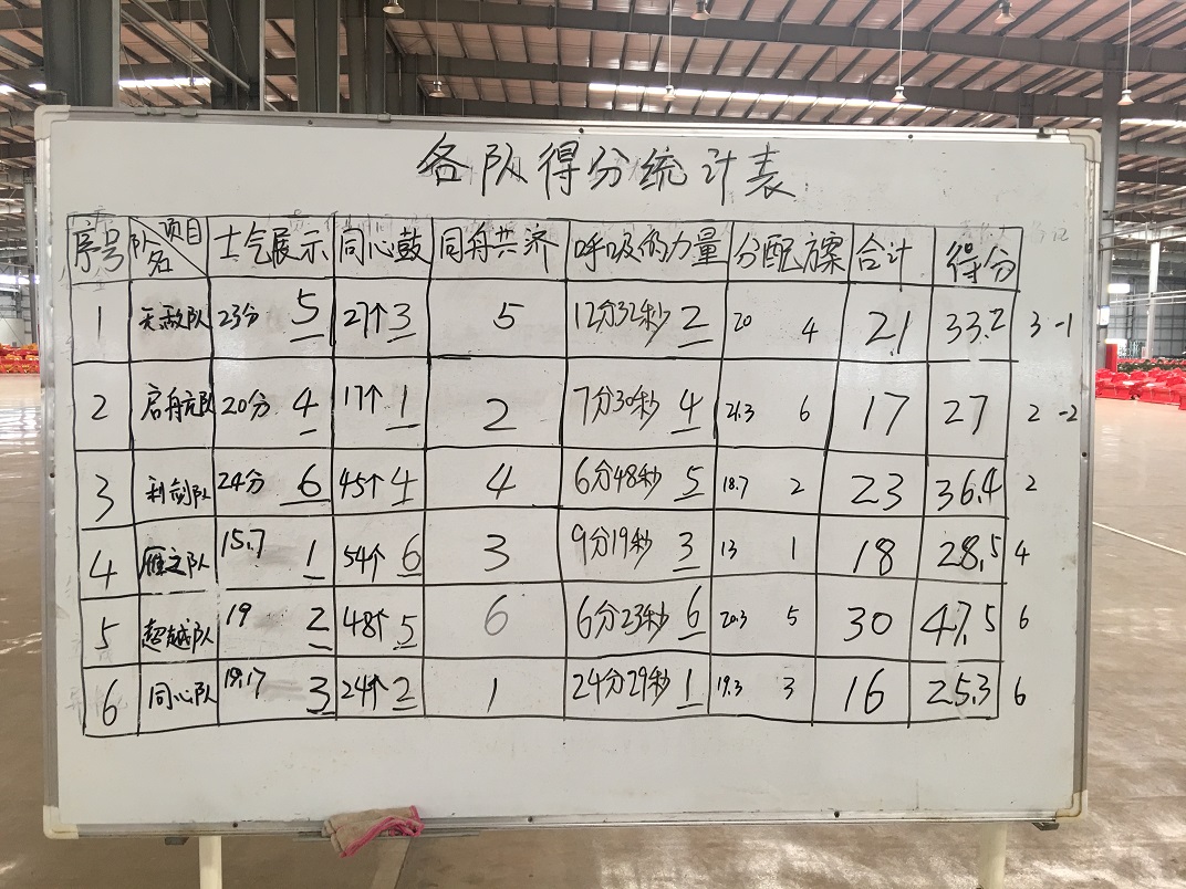 活動(dòng)開始前,通過短暫的熱身活動(dòng),打破了員工之間的隔閡,營造了團(tuán)隊(duì)氛圍。接下來,在總教練的指導(dǎo)下,全體員工分為六組在士氣展示、同心鼓、同舟共濟(jì)、呼吸的力量等幾個(gè)項(xiàng)目上進(jìn)行了比拼。